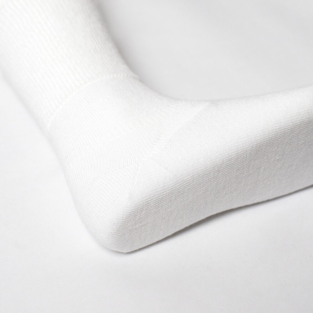 かかとをキャッチするような形状でずれにくく、歩行時やシューズの脱ぎ履きでも生地がもたつきません。さらにその特殊なかかと構造によってソックス自体がL字型に。